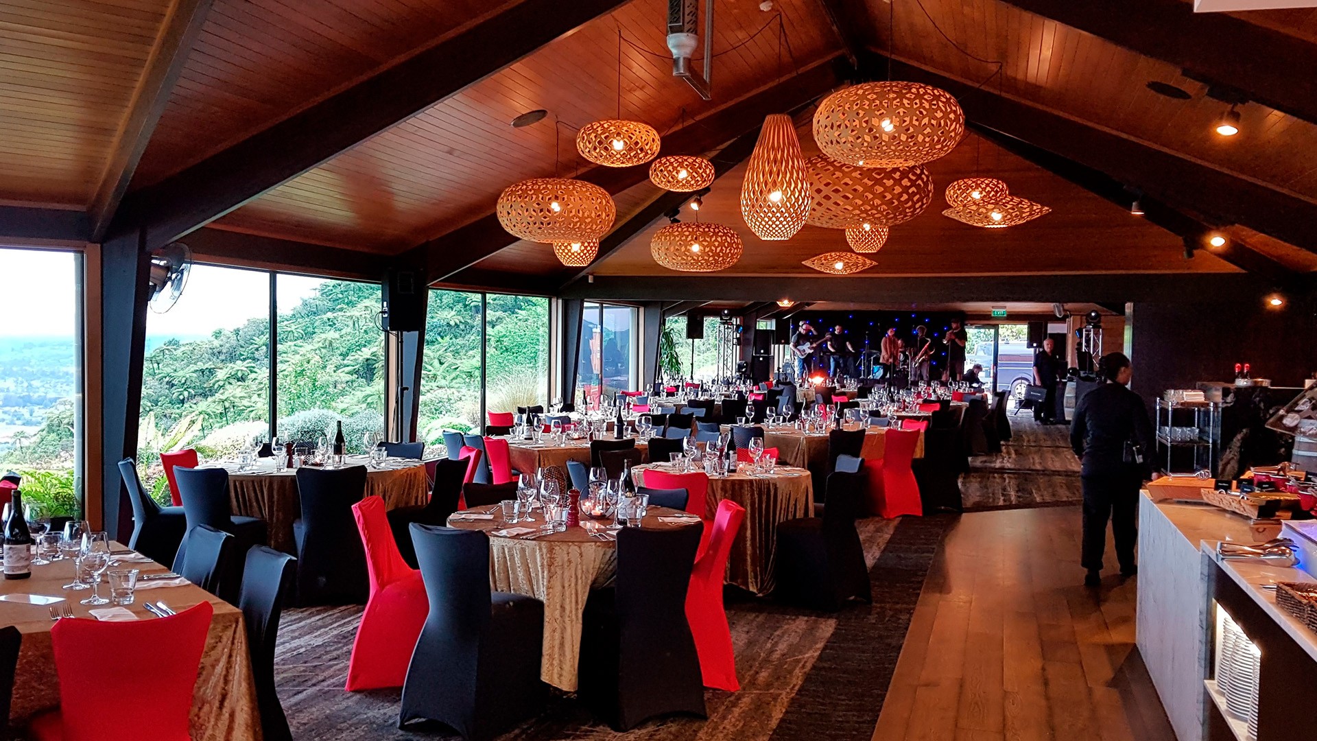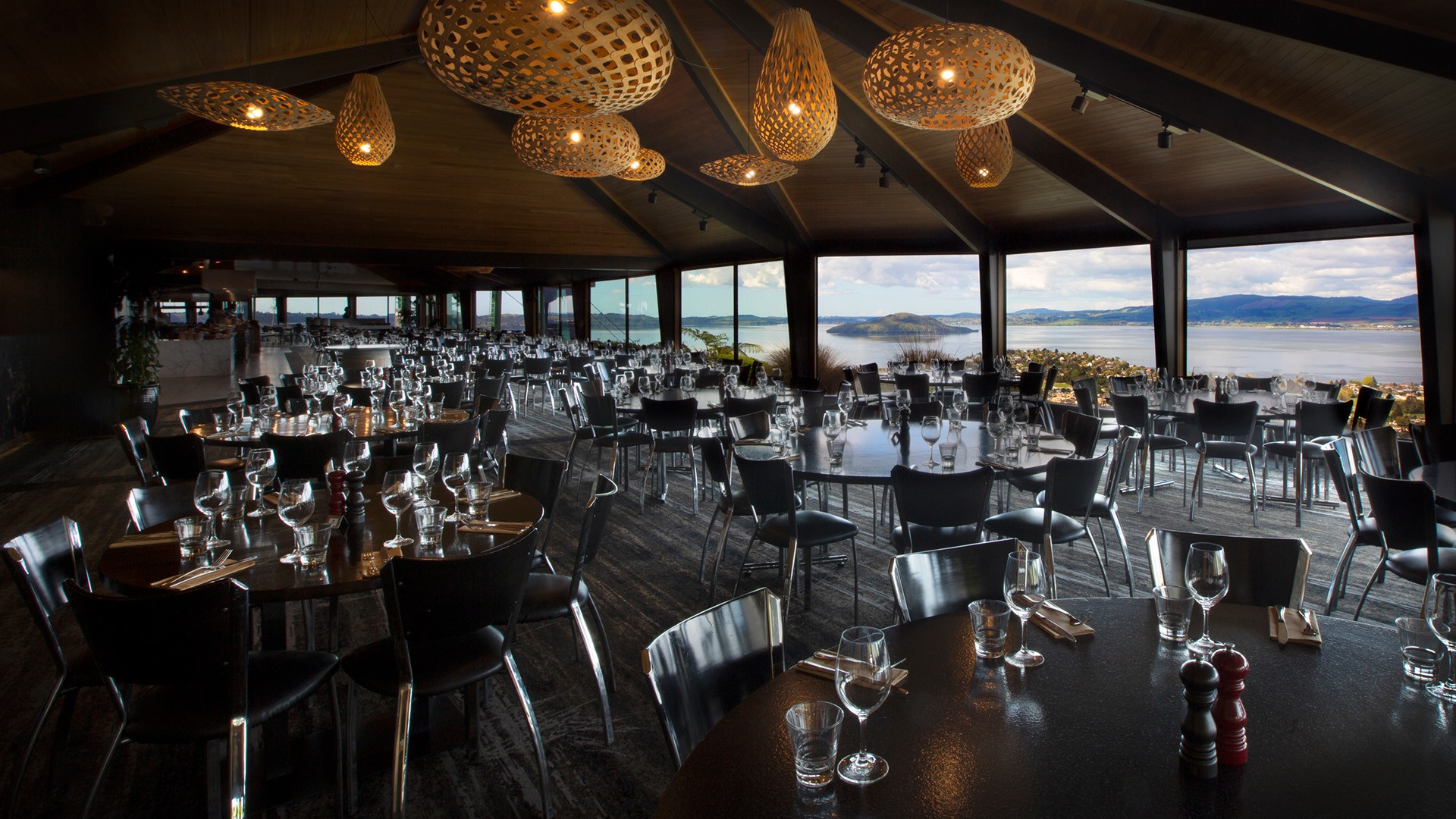 This venue is ideal for formal or informal dinners. It provides a view of the lake and the city of Rotorua with Mt. Tarawera as the backdrop.