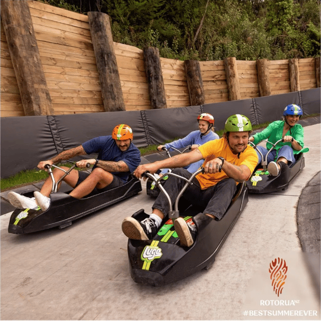 Luge, zip and swing your way through Skyline Rotorua’s adrenaline-fuelled gravity rides with a Half Day Adventure Pass. Includes: Return Gondola ride, 5 Luge rides, Hyfly Zipline, Skyswing and Luge photo.